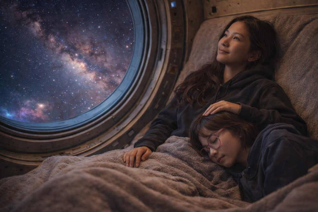 Ce deuxième épisode marque le premier grand souffle du voyage — celui où l’émerveillement prend le pas sur la mélancolie du départ. Les deux sœurs découvrent ainsi pour la première fois ce que l’espace a vraiment à offrir.